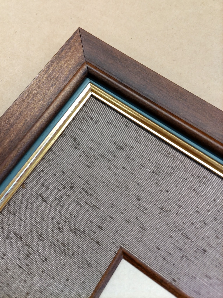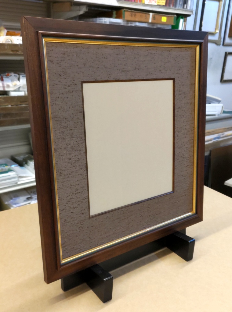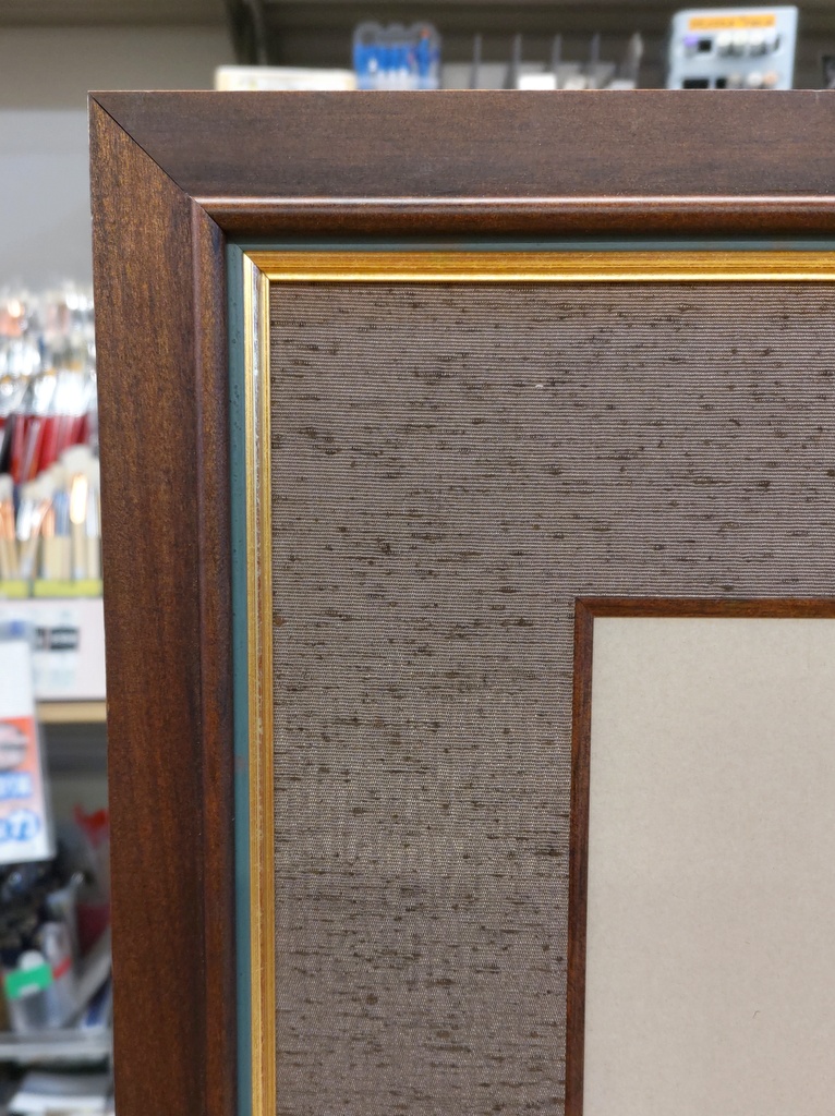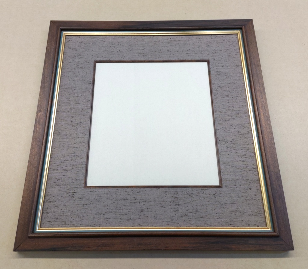 35mm幅のこげ茶古代風塗装額と細金緑額の組み合わせ仕様に70mm幅古代紫布マット(刃先オーク色)が付いています。